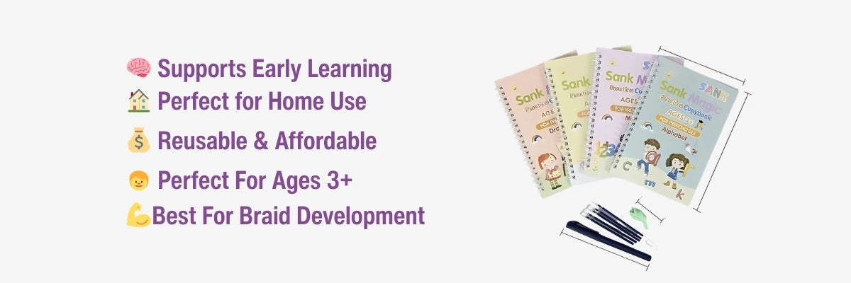 Sank Magic Practice Copy Books (4 Magic Copybooks + 10 Extra Refills + 1 Magic Pen)